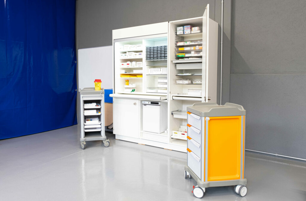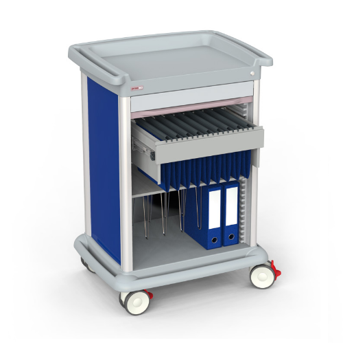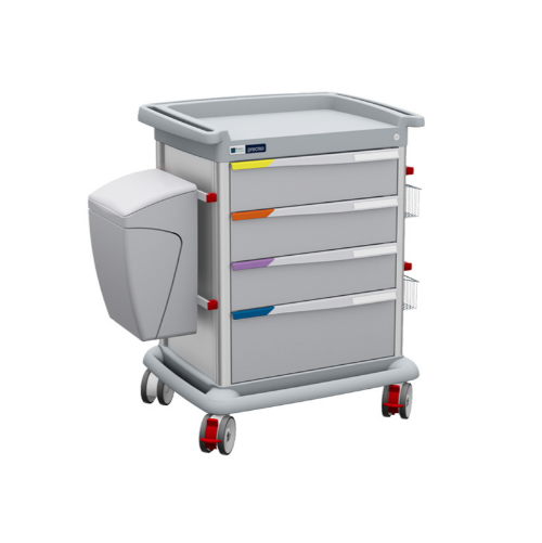 Für Medikamente, Verbandsmaterial und Pflegeutensilien. Konfigurierbar und leicht zu reinigen. Der Wagen, der bei jeder Schicht dabei ist und alles griffbereit hält, was das Pflegeteam braucht.